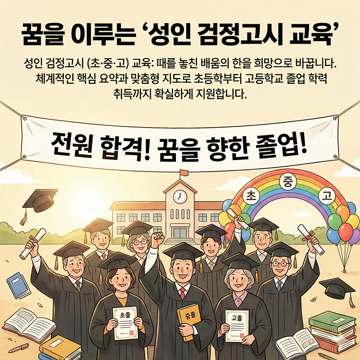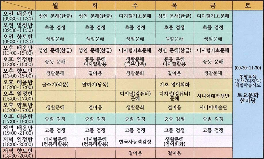 검정고시(초졸,중졸,고졸)교육, 시니어 대학생반 운영,