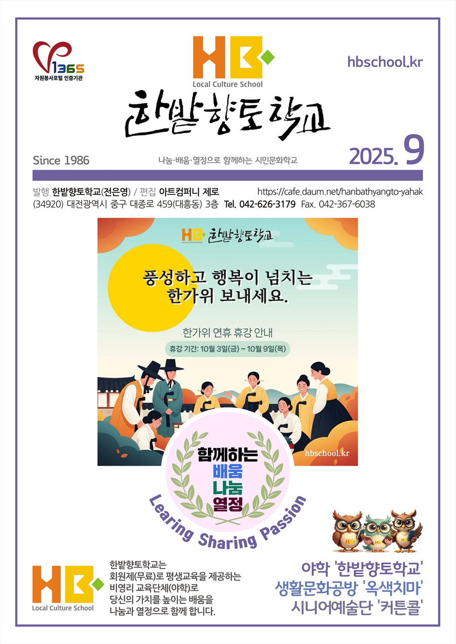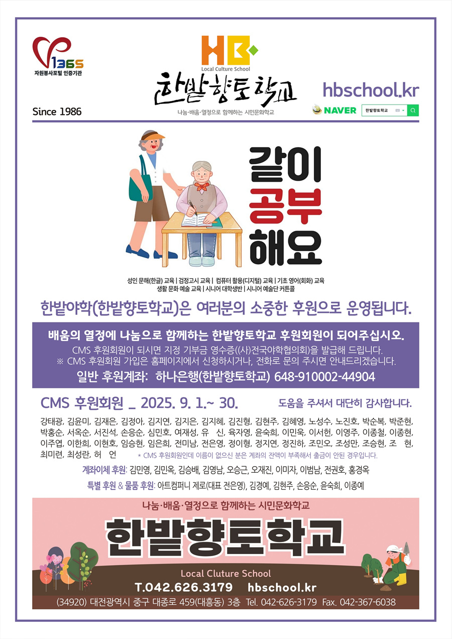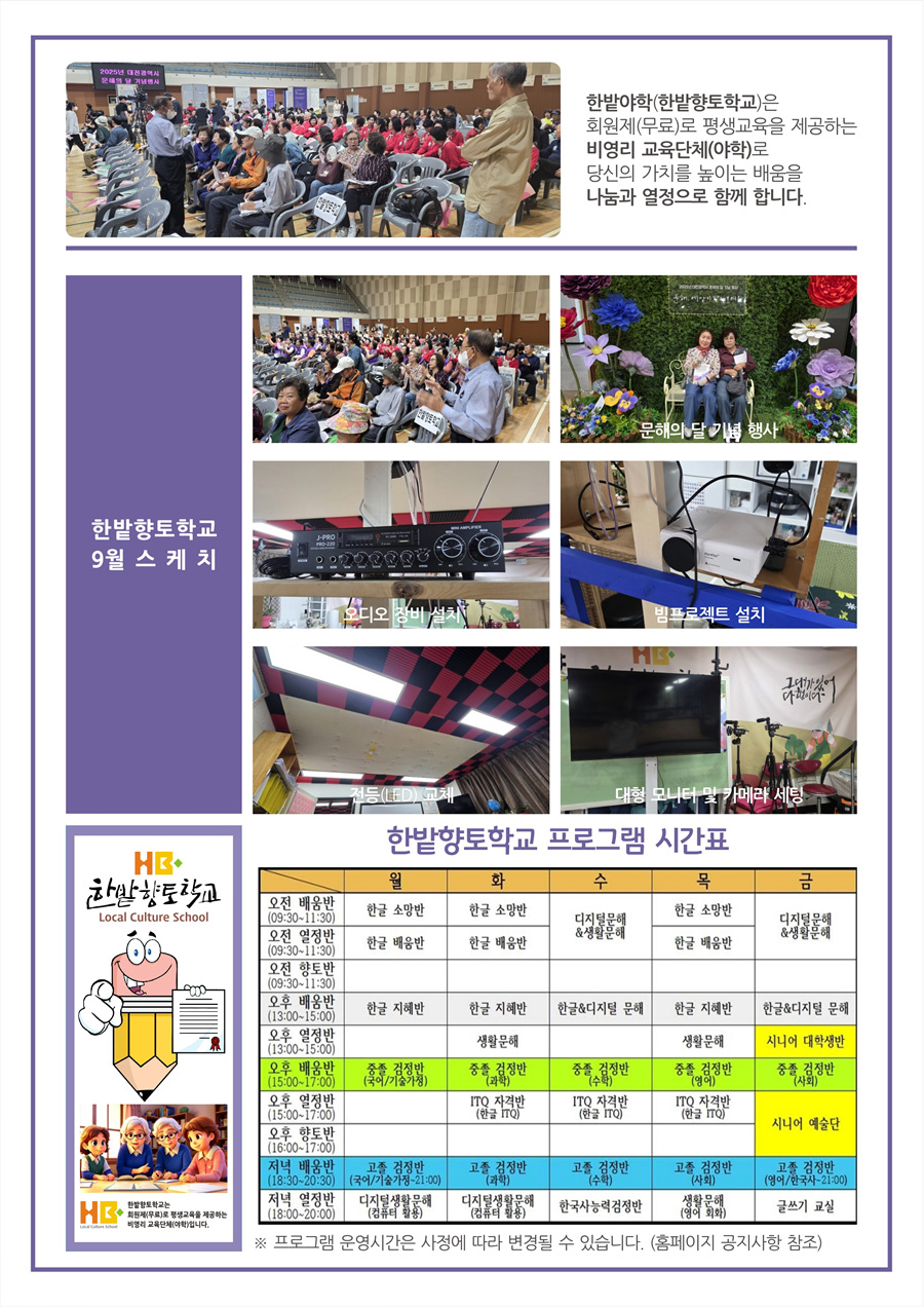대전야학 한밭향토학교 2025년 9월 소식 _ 성인 문해(한글)교육, 성인 검정고시 교육