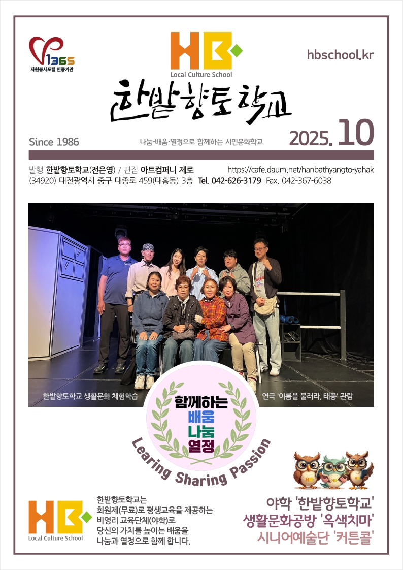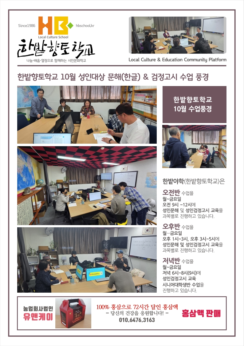 대전야학 한밭향토학교 2025년 10월 소식 _ 성인문해(한글)교육, 성인검정고시교육, 컴퓨터활용교육, 성인기초영어교육