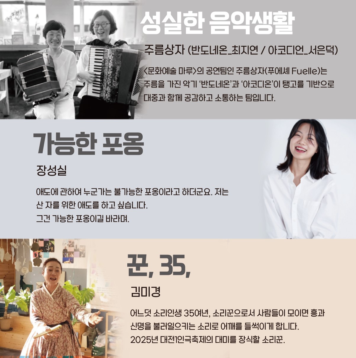 : 기타연주-송나츠 / 즉흥춤-남명옥 / 반도네온아코디언연주-주름상자 /