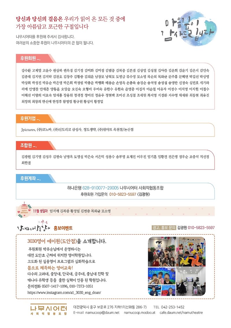 나무시어터 사회적협동조합 2025년 11월 소식