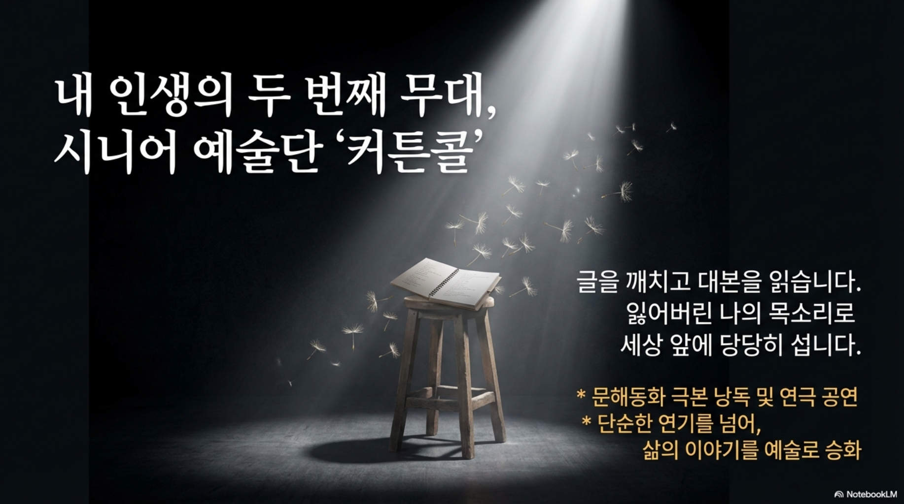 또한 생활문화 교육공방 ‘결이음’, 시니어 예술단 '커튼콜'과 같은 생활문화 활동을 통해 노년층의 자아실현과 정서적 치유를 돕는 지역 공동체의 거점 역할을 수행합니다.