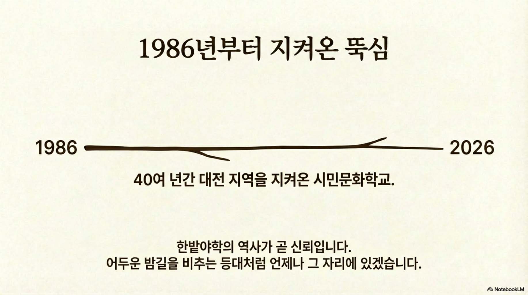 1986년 설립된 대전 지역의 비영리 평생교육 기관으로, 소외된 계층에게 배움의 기회를 무상으로 제공하는 시민 참여형 교육 플랫폼(회원제)입니다.